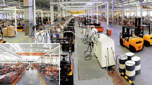 建立了國內(nèi)獨(dú)立的叉車研發(fā)及生產(chǎn)基地 擁有3條叉車總裝線、6條部套裝配線、2條油漆涂裝線和焊接機(jī)器人